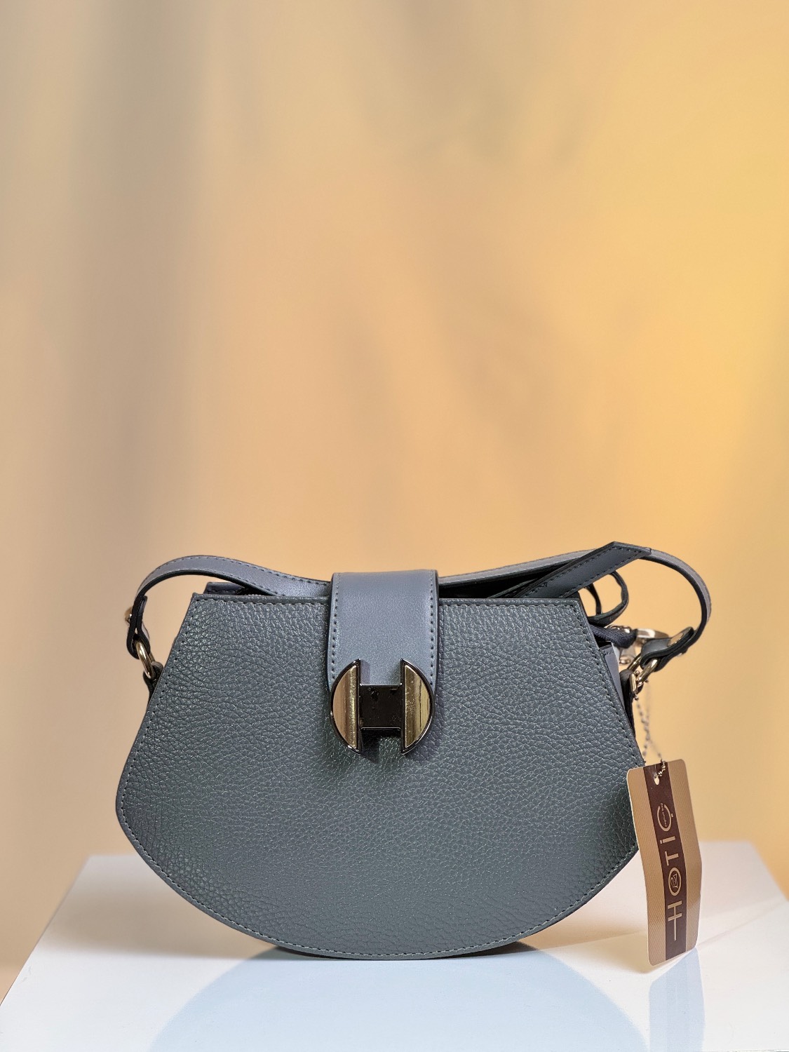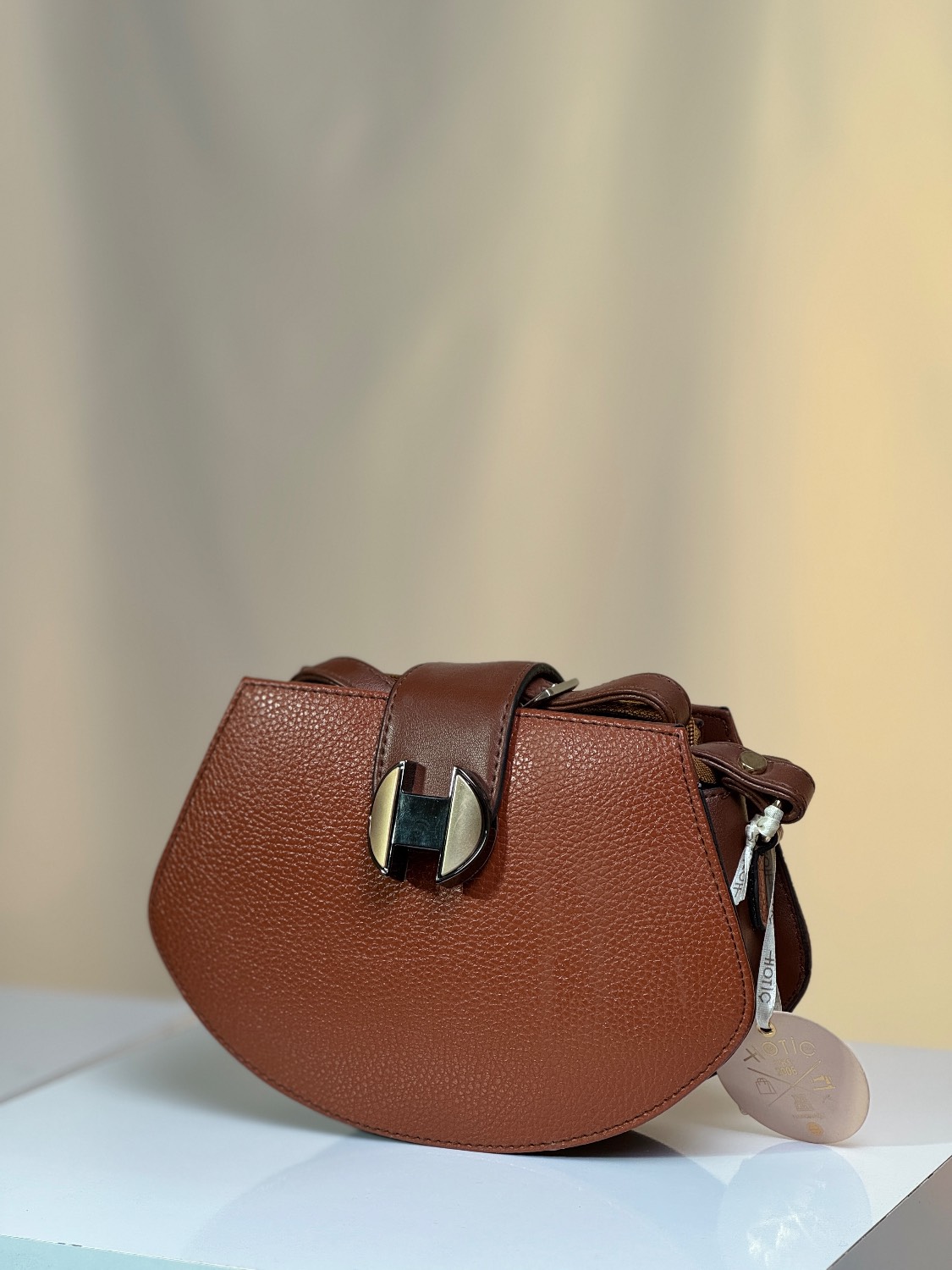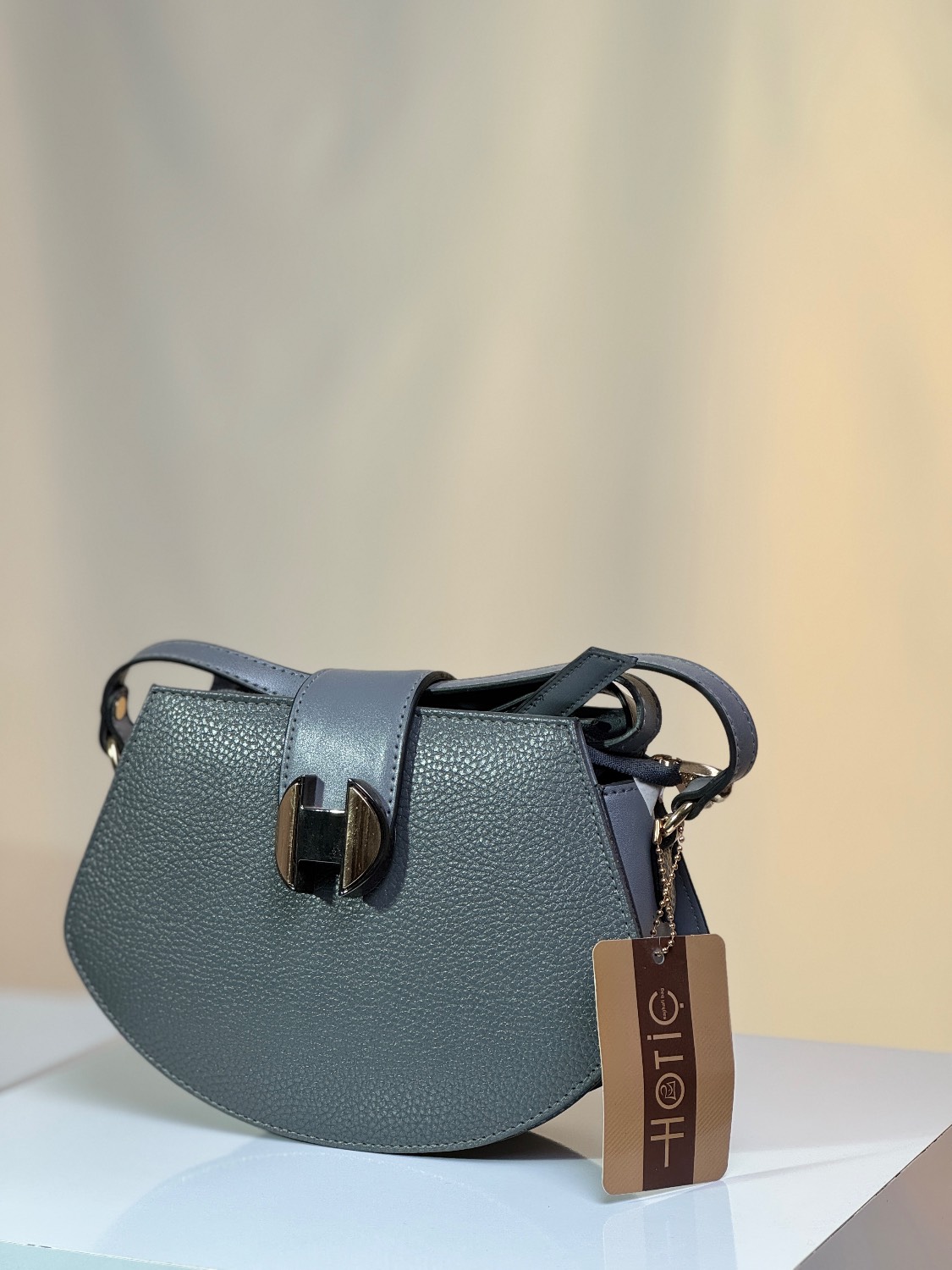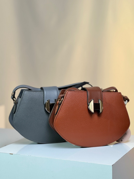 کیف زنانه دوشی مدل یراق H برند هاتیج رنگ بندی طوسی | عسلی