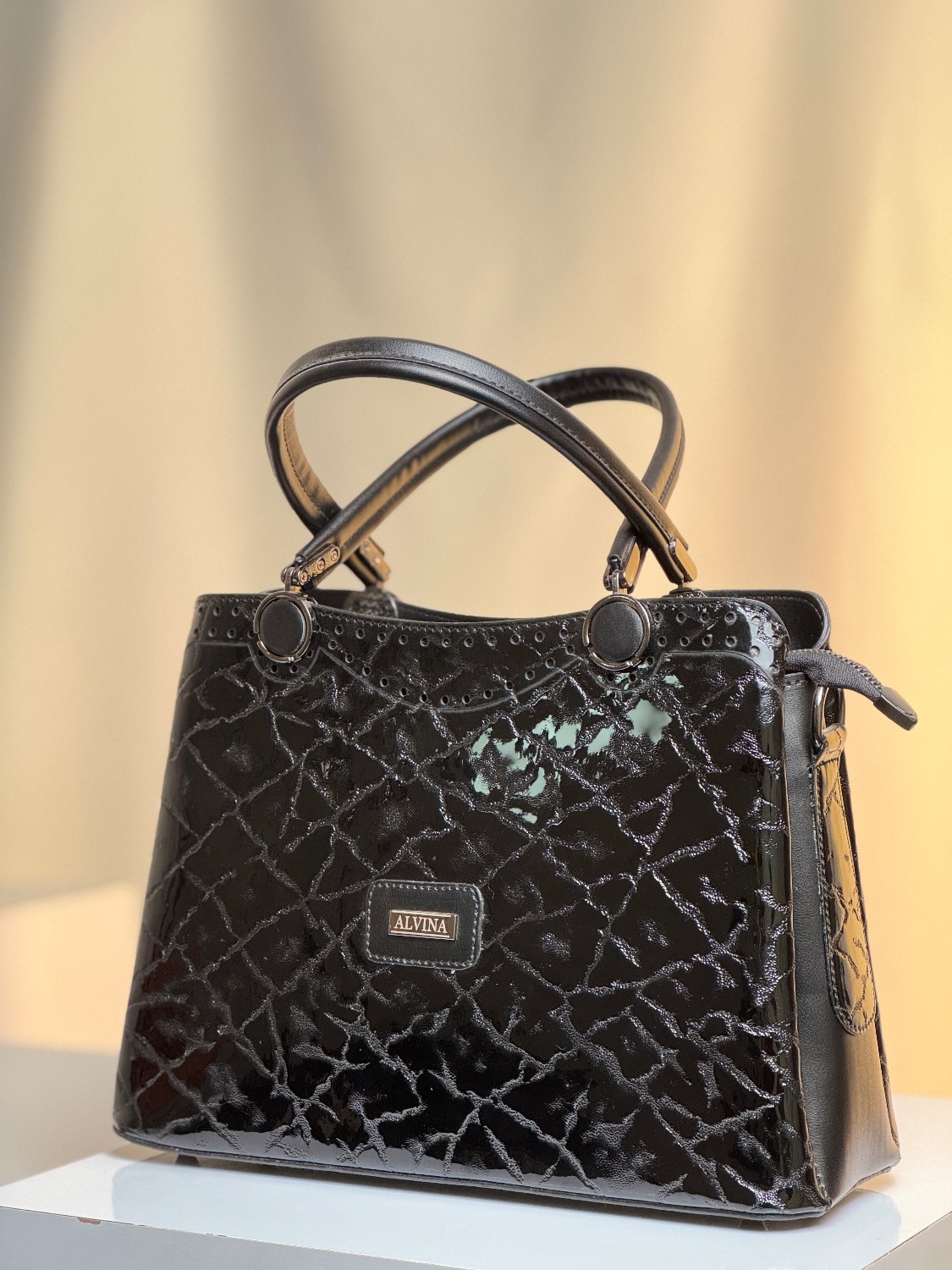 کیف زنانه جنس ورنی درختی وارداتی کد 02 مشکی