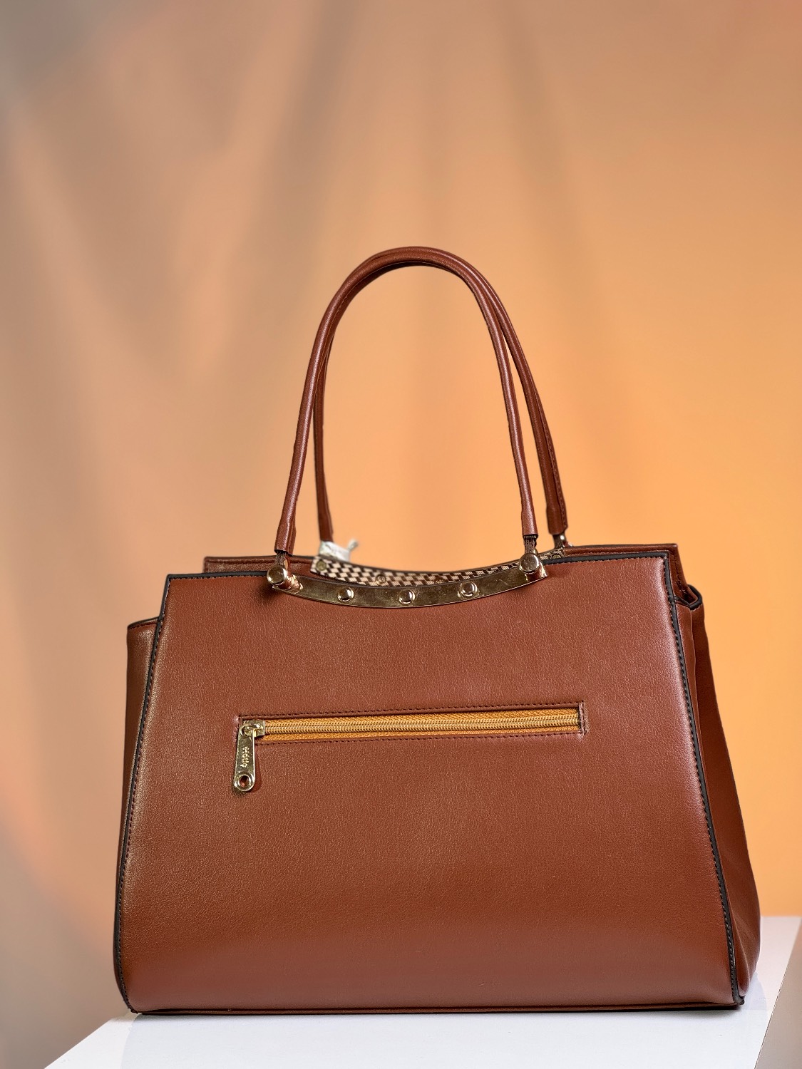 کیف زنانه چرم وارداتی برند هاتیج کد 312 رنگ بندی عسلی
