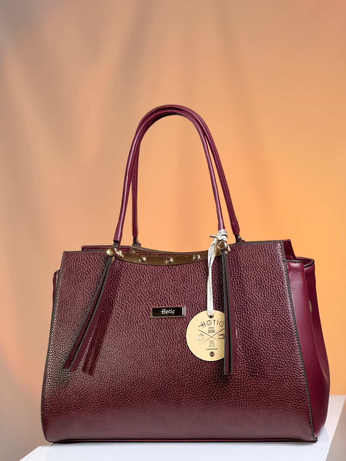 کیف زنانه چرم وارداتی برند هاتیج کد 312 رنگ بندی زرشکی