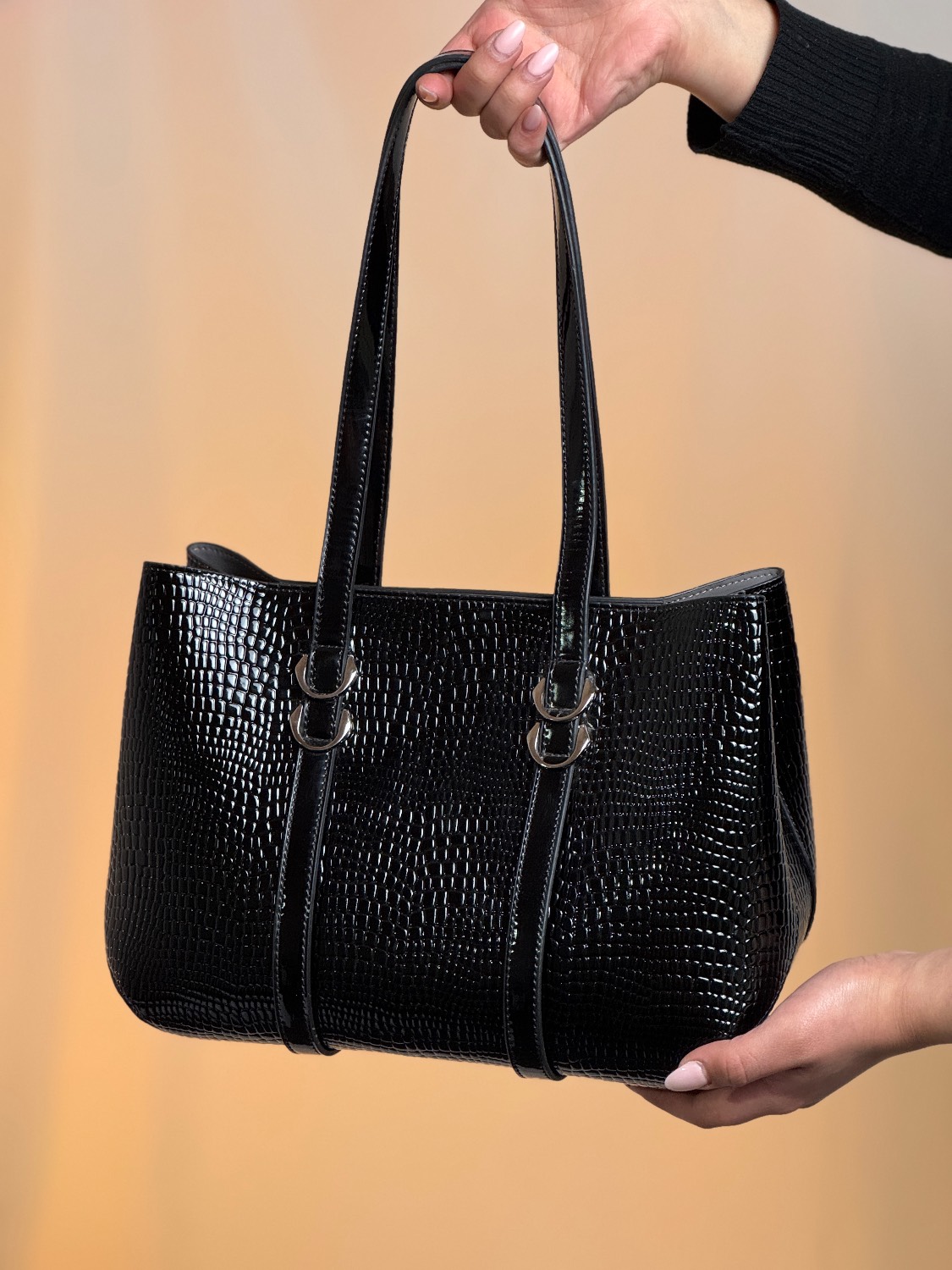 کیف زنانه جنس ورنی لوبیایی وارداتی مدل دو حلقه رنگ مشکی
